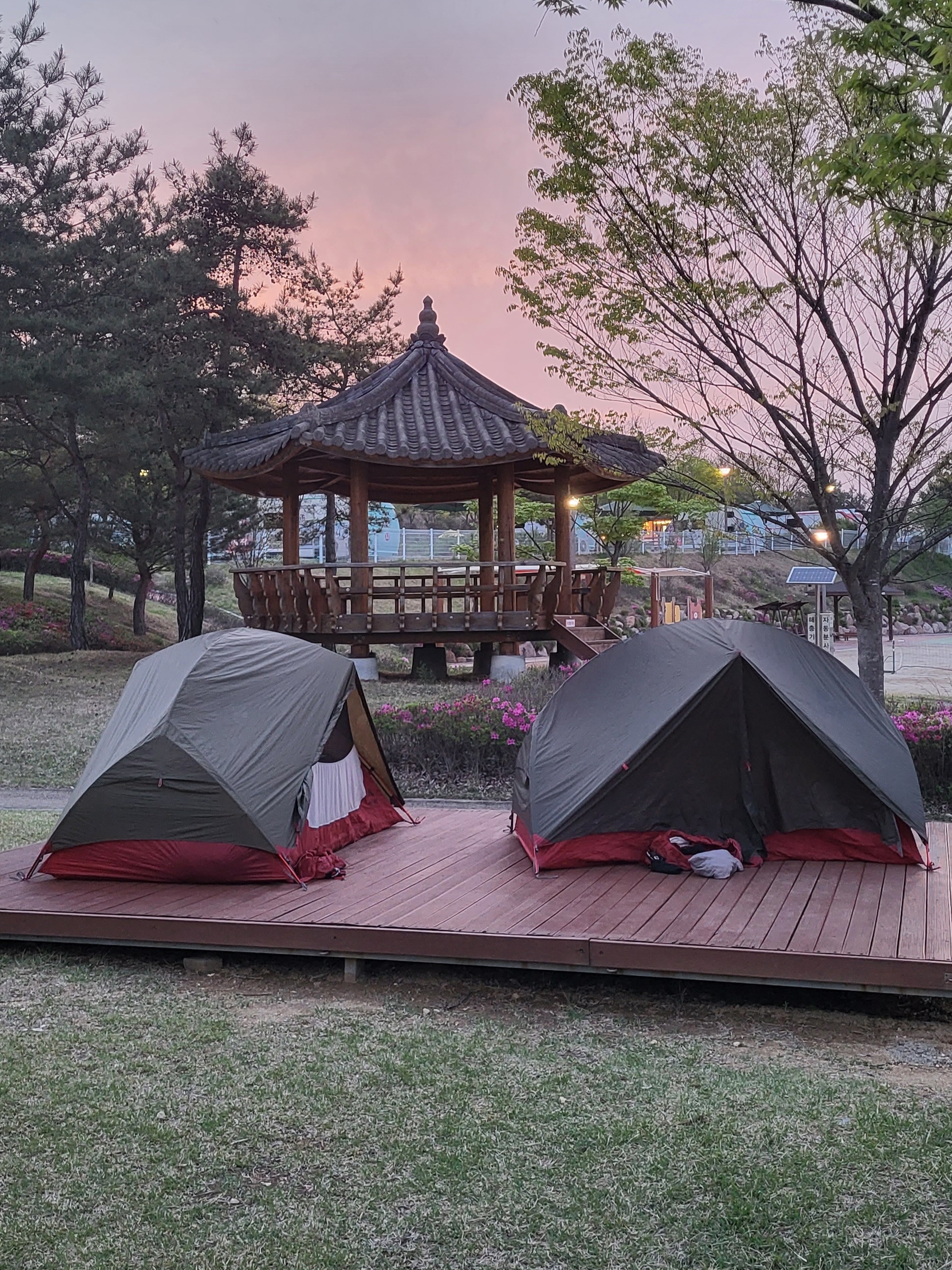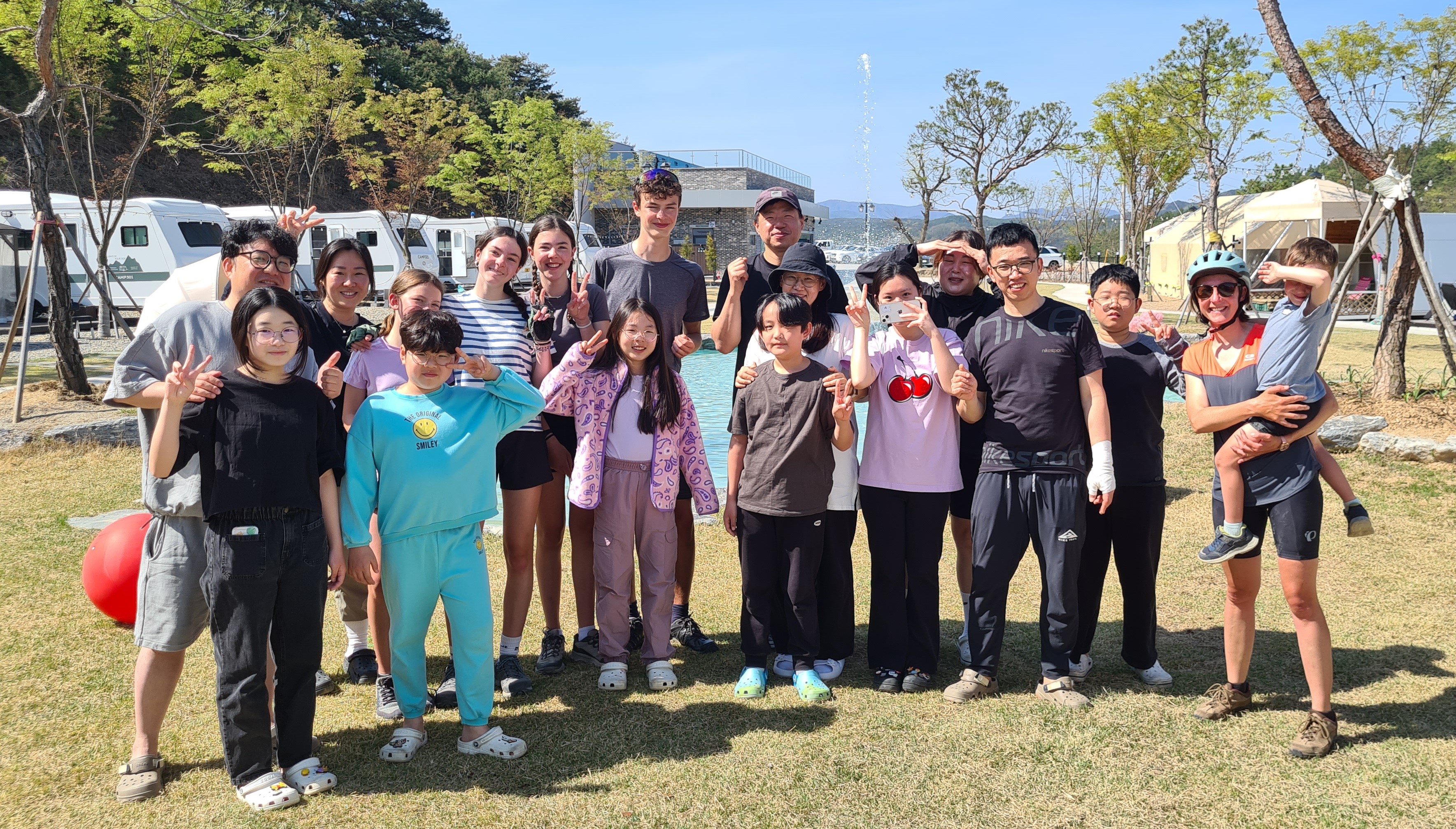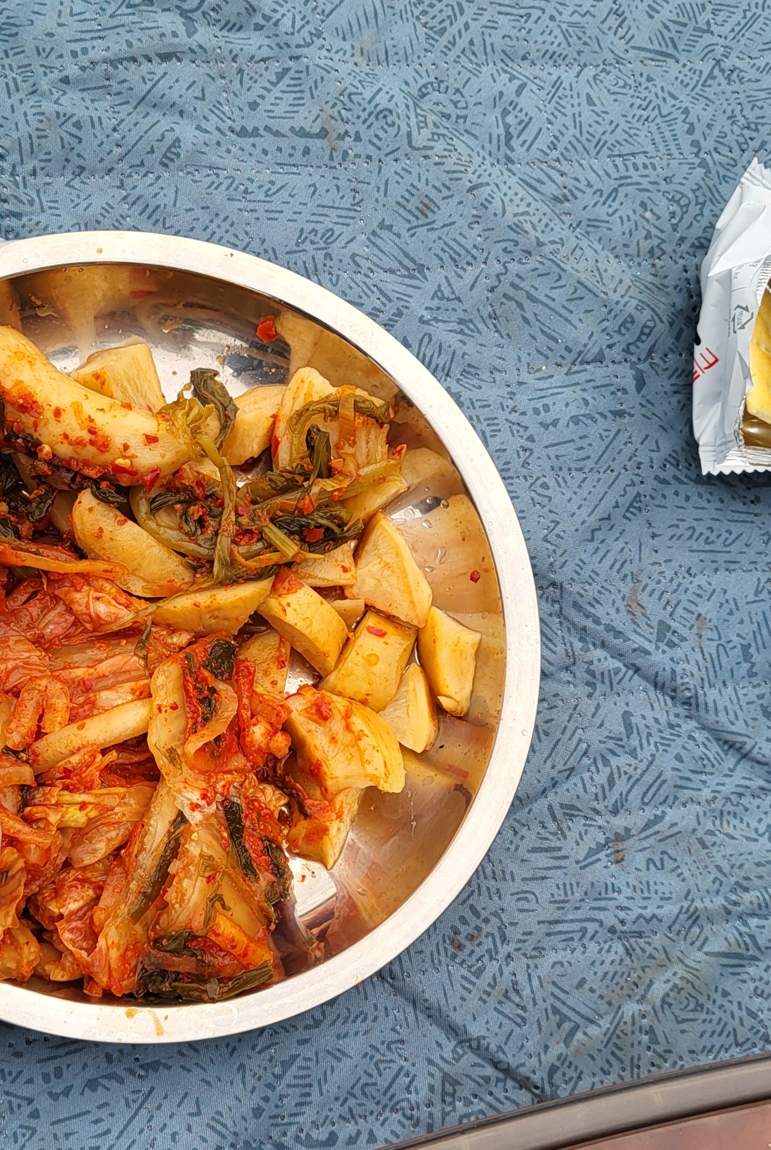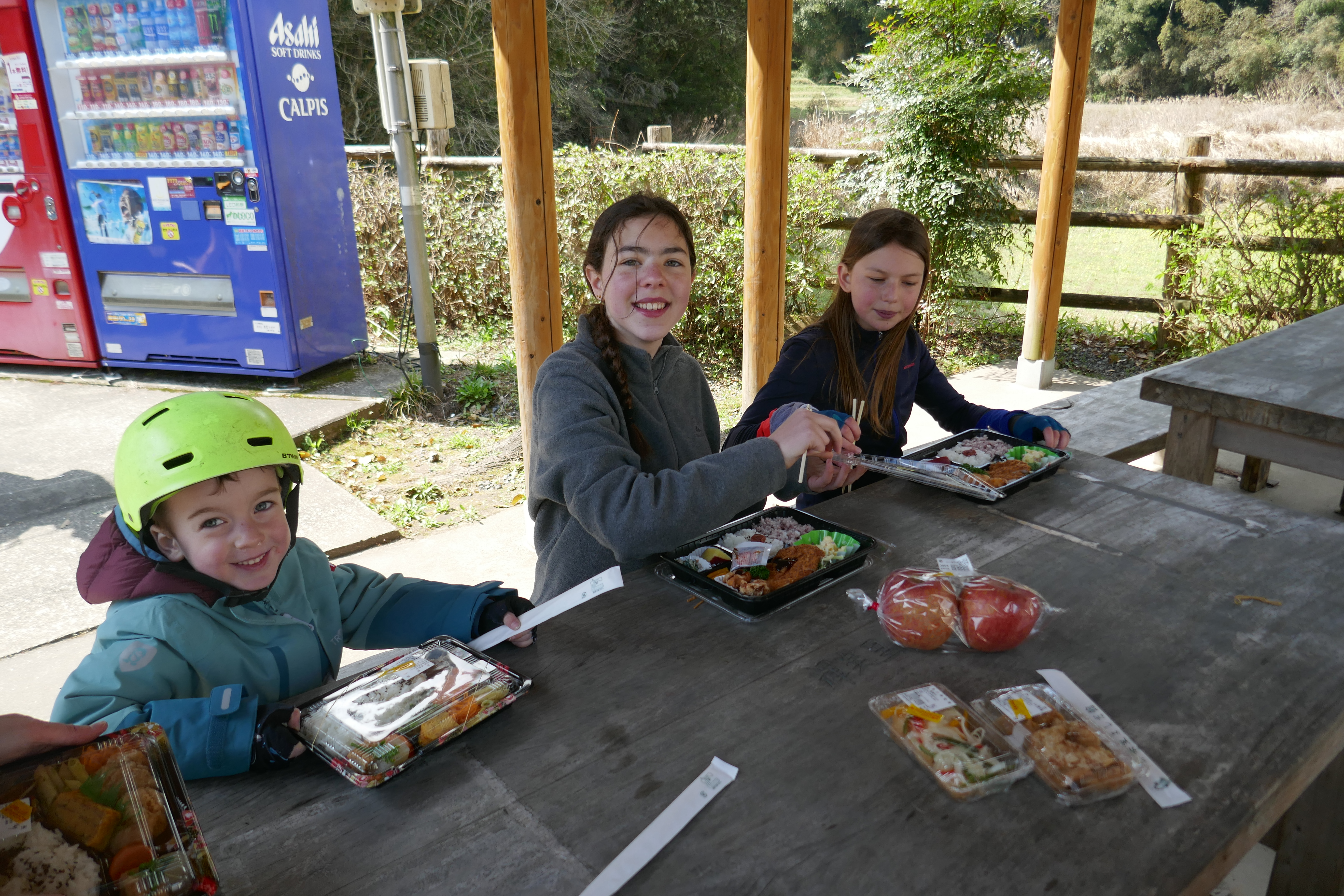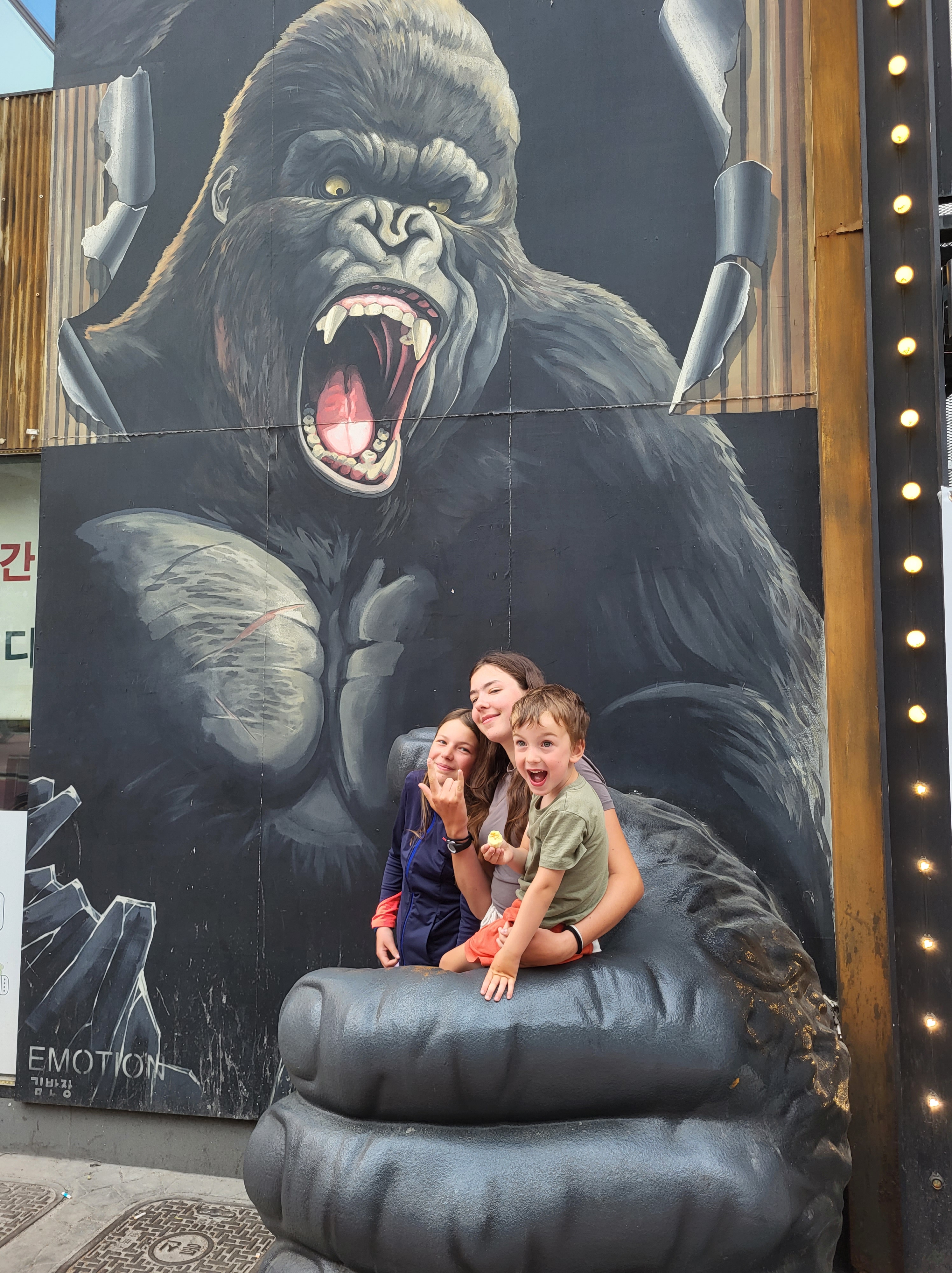 Au fil des kilomètres, nous continuons d’expérimenter la générosité extraordinaire des habitants. Des cyclistes s’arrêtent pour donner aux enfants les ravitaillements qu’ils avaient prévus pour eux. Dans les campings, il n’y a pas eu un soir où nous n’avons pas reçu de la nourriture (du kimchi bien sûr, le plat traditionnel coréen fait de légumes lactofermentés plus ou moins épicés), une table et des tabourets à prêter (on devait faire un peu pitié accroupis autour de notre butagaz…), et jusqu’à … 5 boites de 200 mouchoirs ! A deux reprises, nous nous sommes même fait avancer le coût de notre camping suivant par des gens rencontrés quelques minutes auparavant et que nous avions sollicités pour nous aider à réserver sur des sites en coréen (on vous racontera de vive voix comme il est fastidieux de réserver un camping en Corée du Sud, notamment parce que seuls des modes de paiements électroniques domestiques sont prévus, et parce qu’il faut toujours encoder la plaque d’immatriculation de sa voiture…).