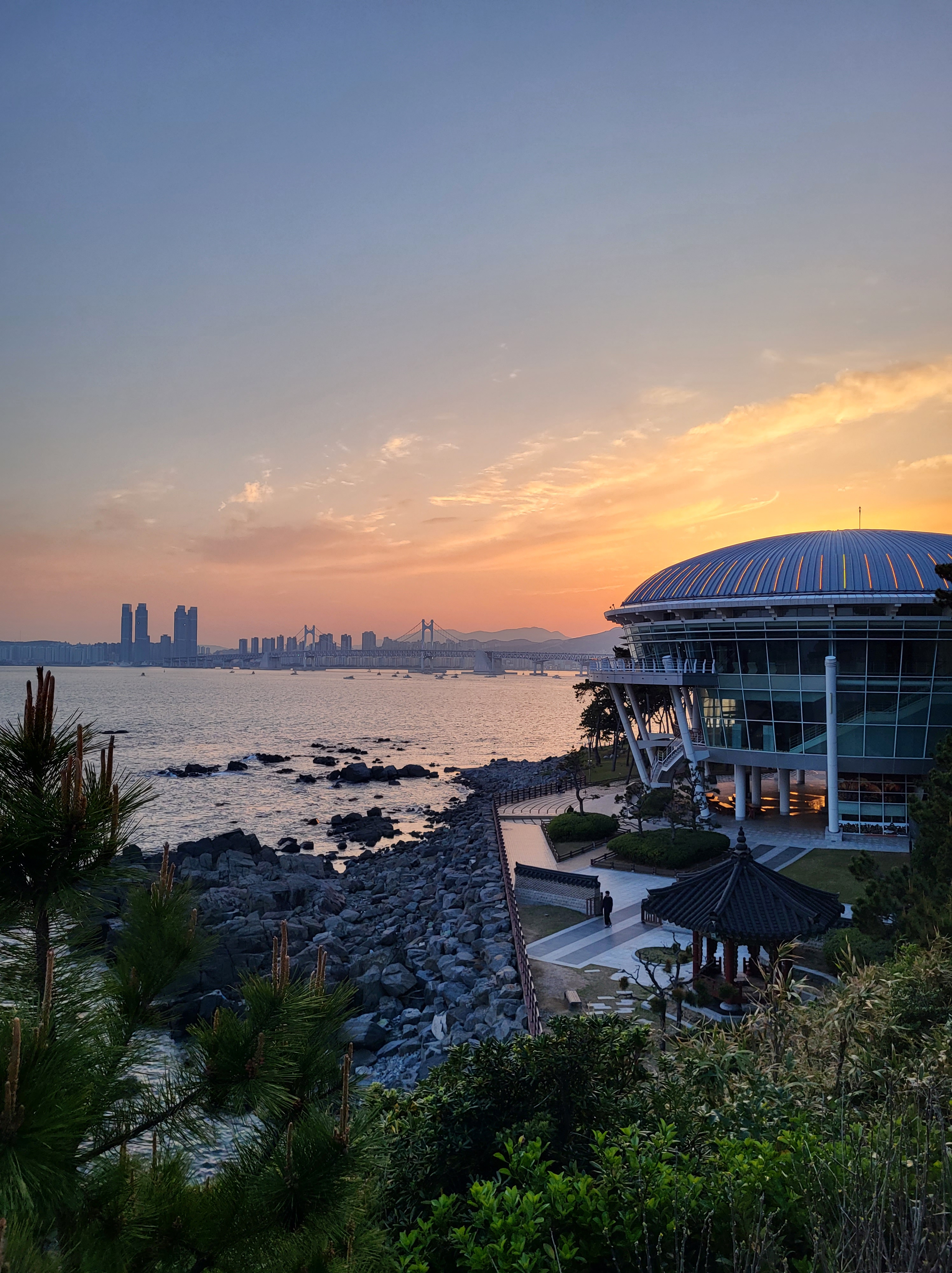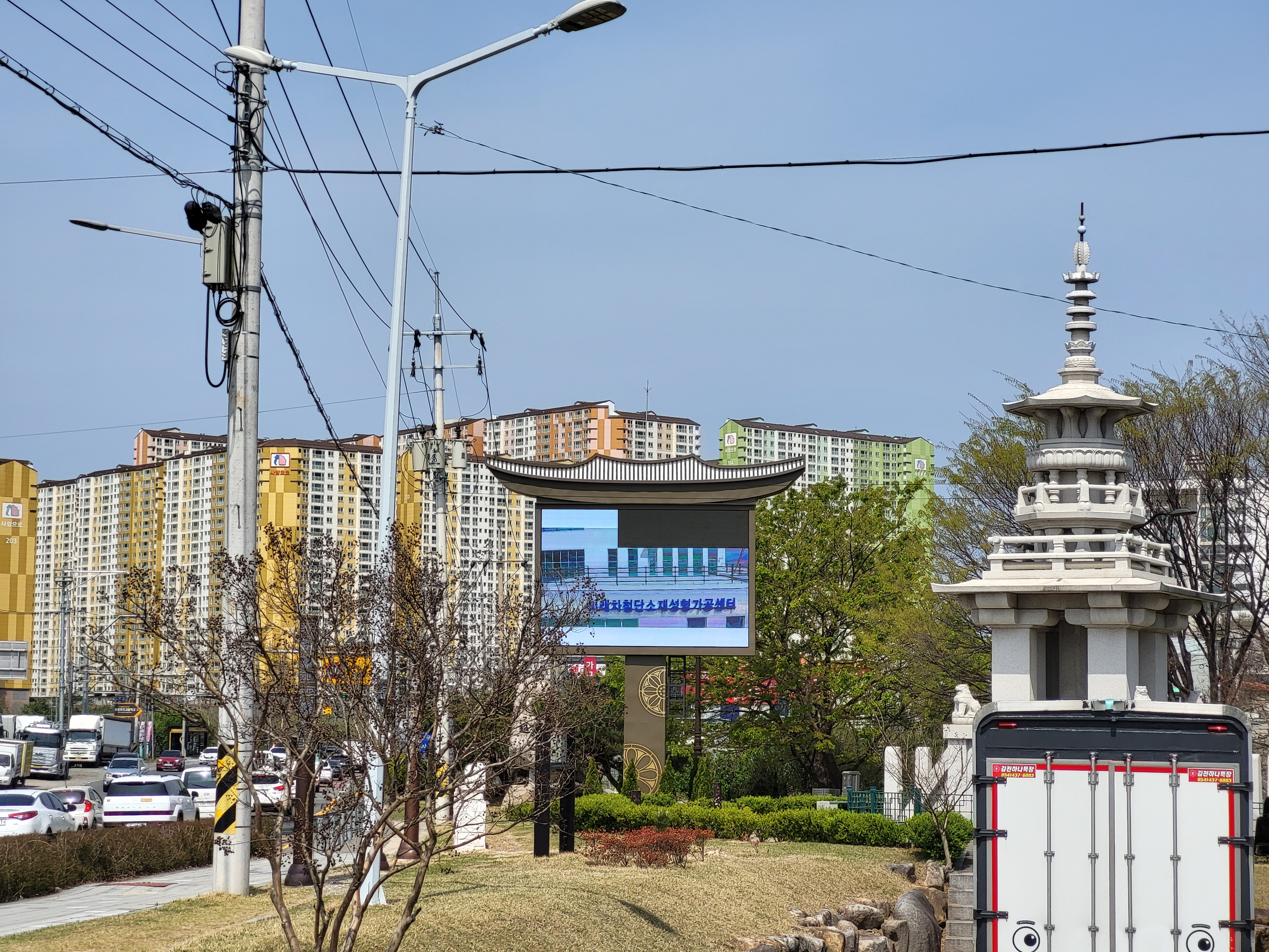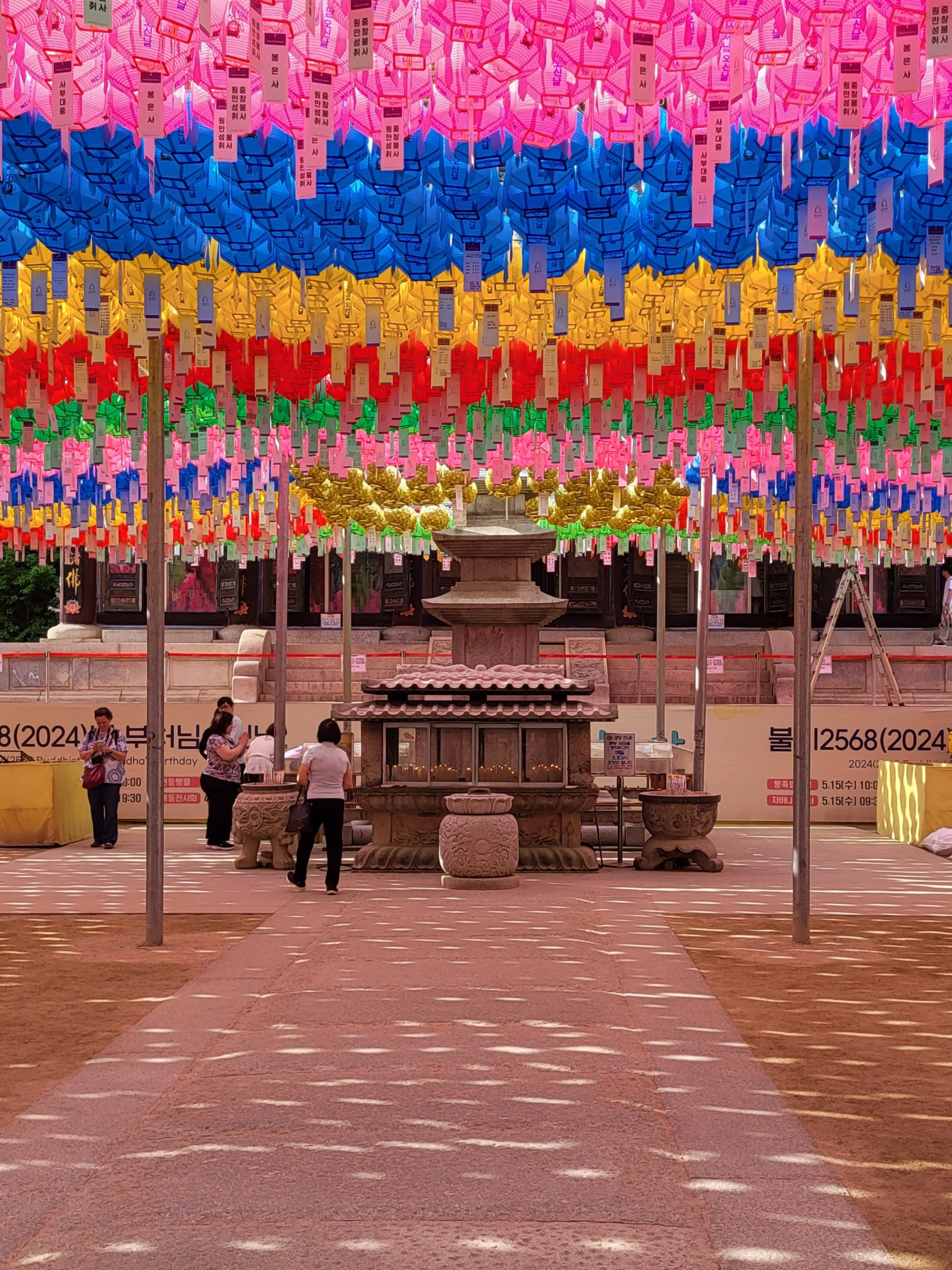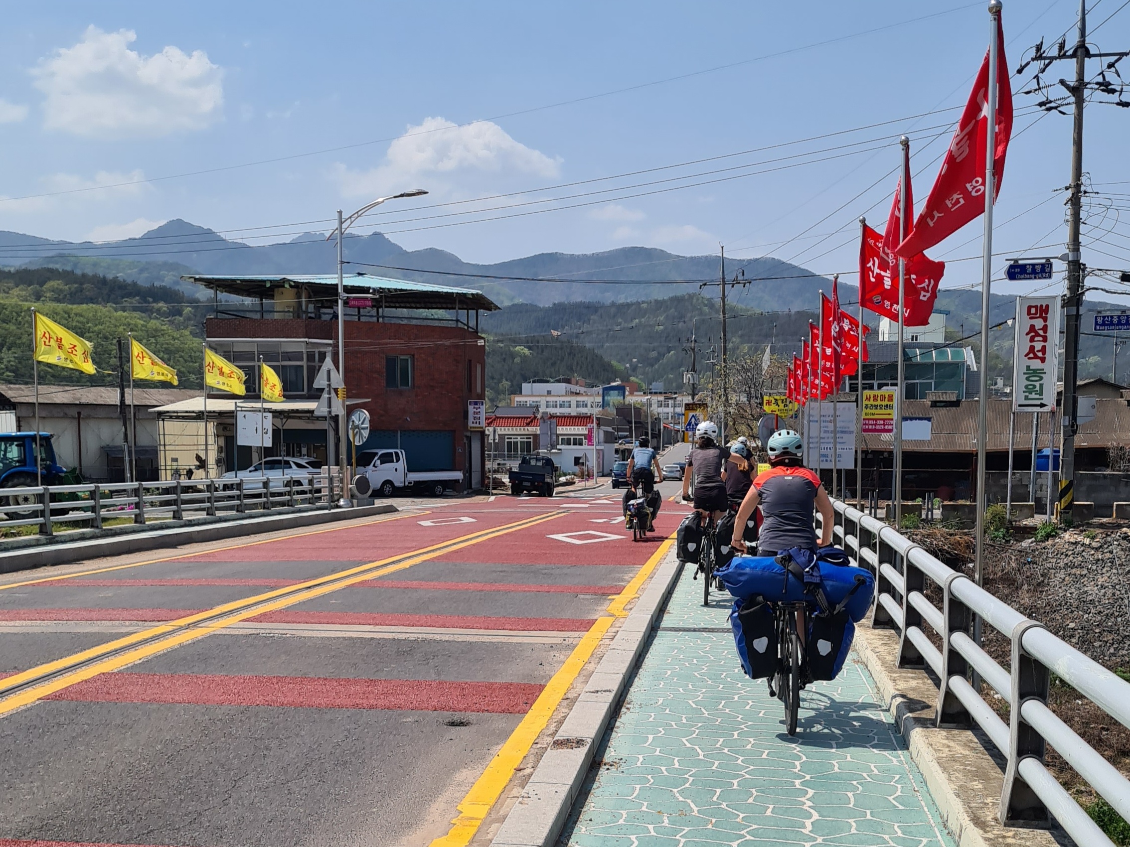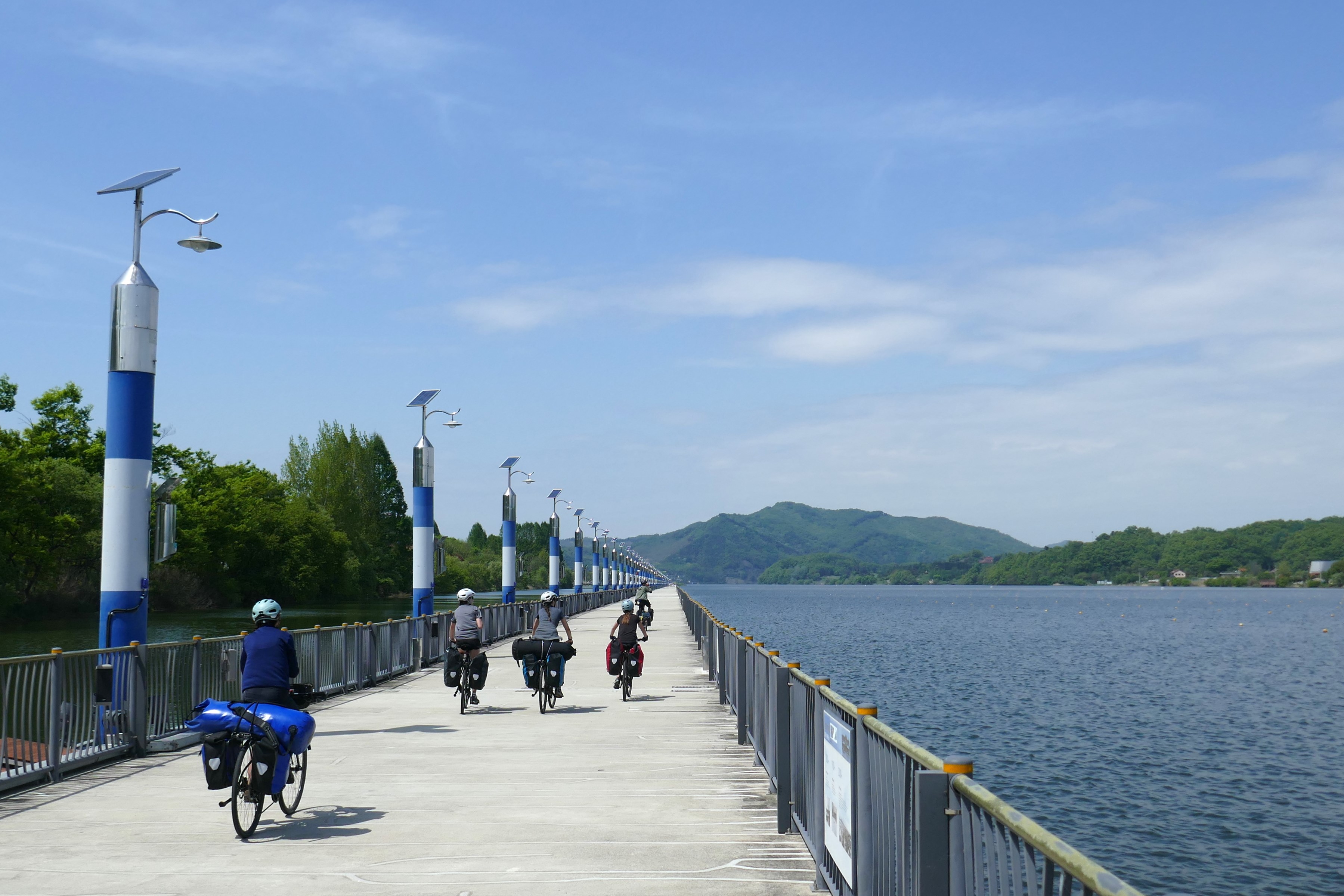 Nous voici au terme de notre voyage, à Séoul, que nous avons rejoint via la piste cyclable « des 4 rivières », qui fait partie du vaste réseau de plus de 1.700 kilomètres traversant le pays sur plusieurs axes. La majeure partie du tracé est en site propre, et on en a profité un max ! Cela nous a tellement changé des 2 x 4 bandes de nos débuts en Corée du Sud… Tout au long du parcours, il y a de nombreuses pagodes sur le bord de la route qui invitent à la pause, des toilettes, parfois des points de ravitaillement en eau et même de petits ateliers d’autoréparation de vélo. On a aussi retrouvé quelques poubelles publiques, ce qui a son importance (au Japon, il n’en existe pratiquement pas, ce qui surprend dans un pays où tout est suremballé, et ce qui nous a parfois quelque peu compliqué la tâche). Des cabines téléphoniques rouges annoncent des « certification points », où l’on peut apposer un cachet dans un petit carnet, preuve du passage au point donné. Un carnet rempli donne droit à un sticker dans le passeport, délivré par les autorités.