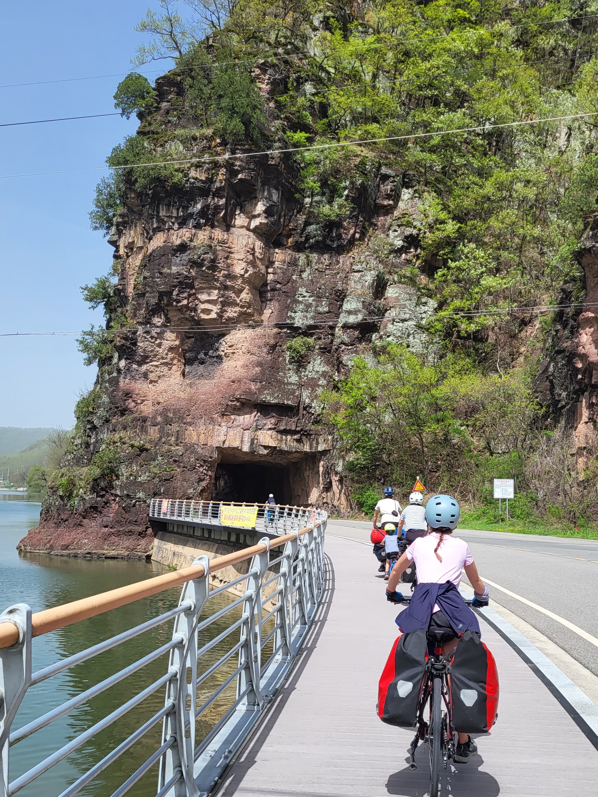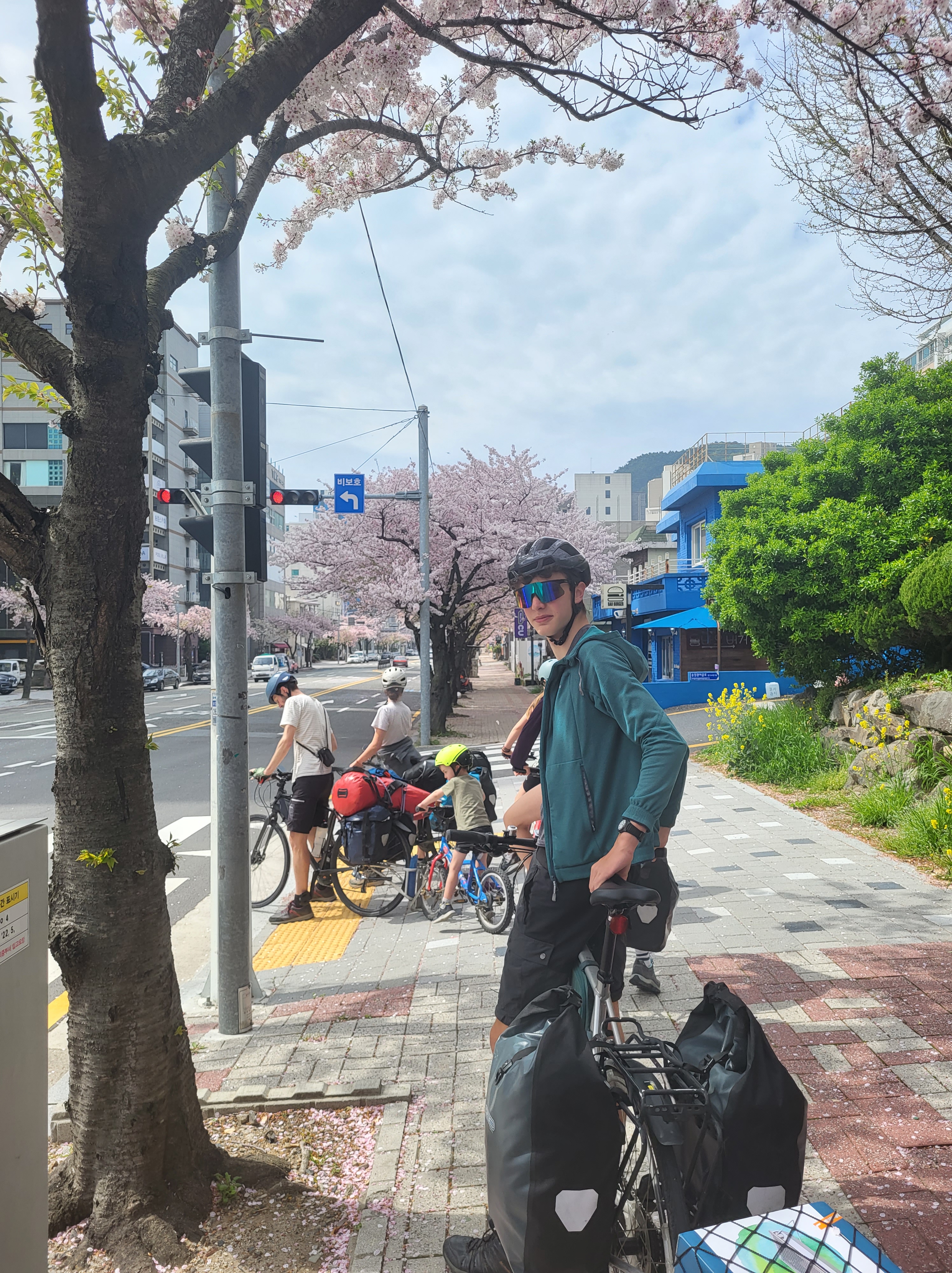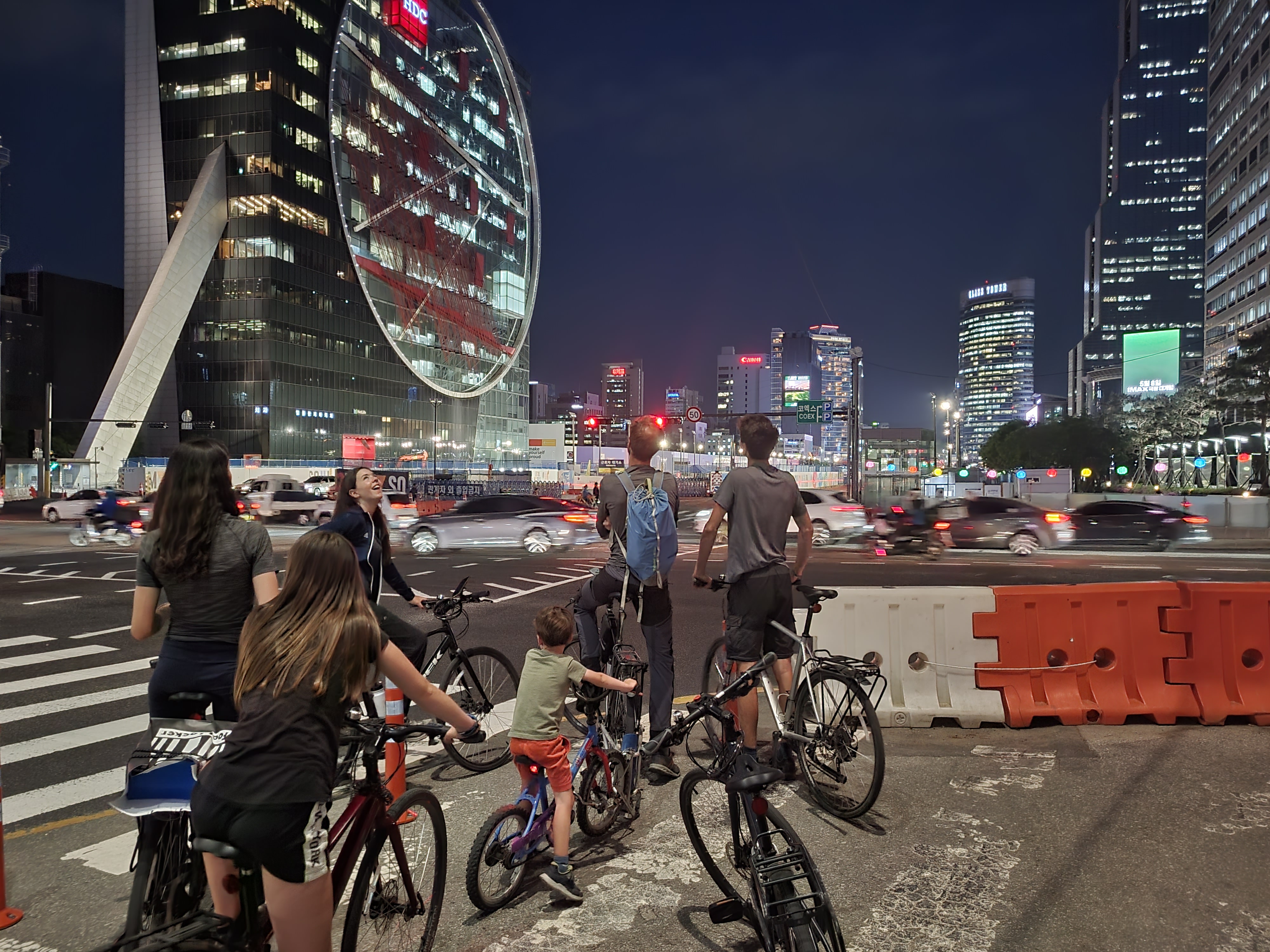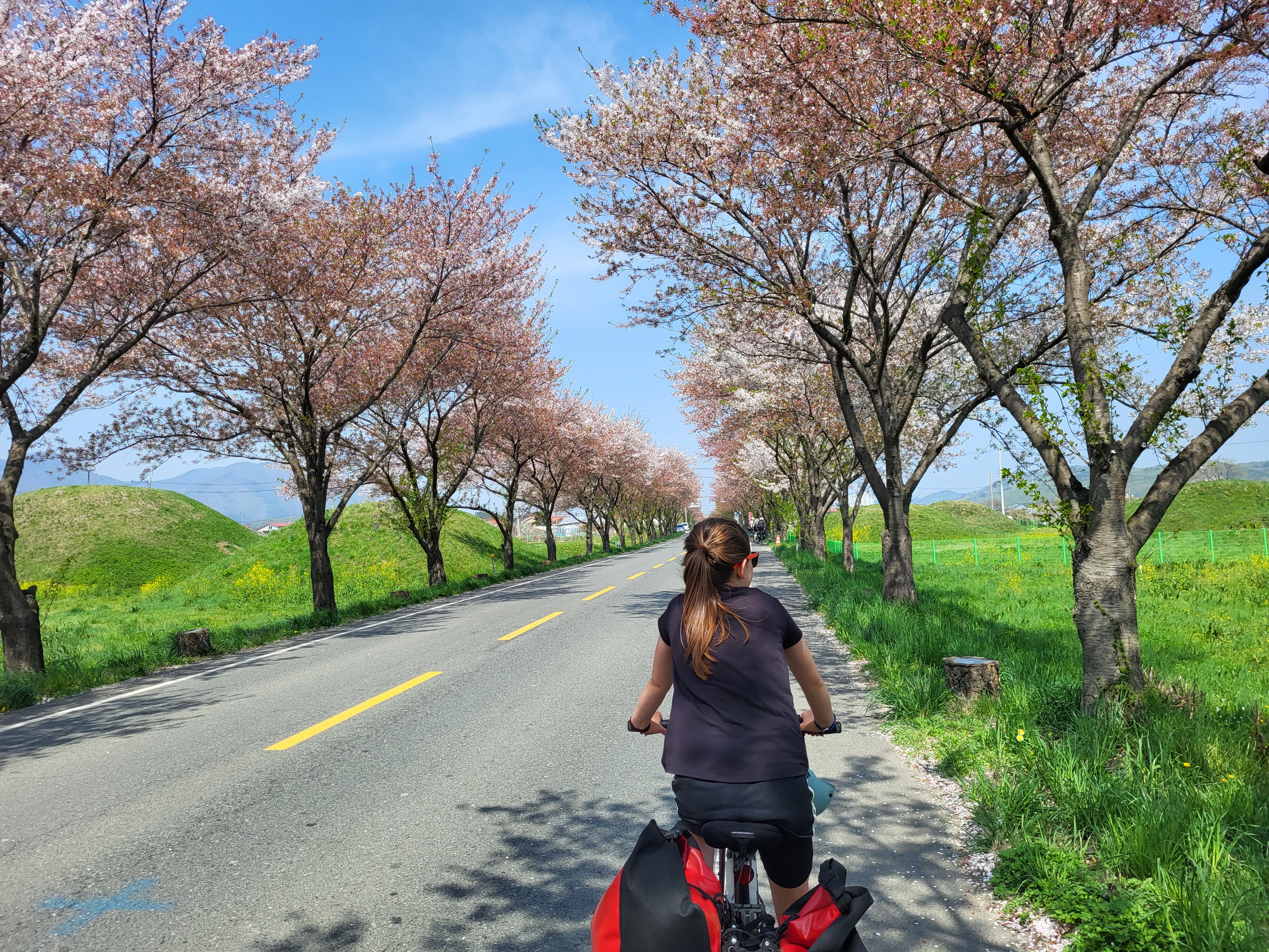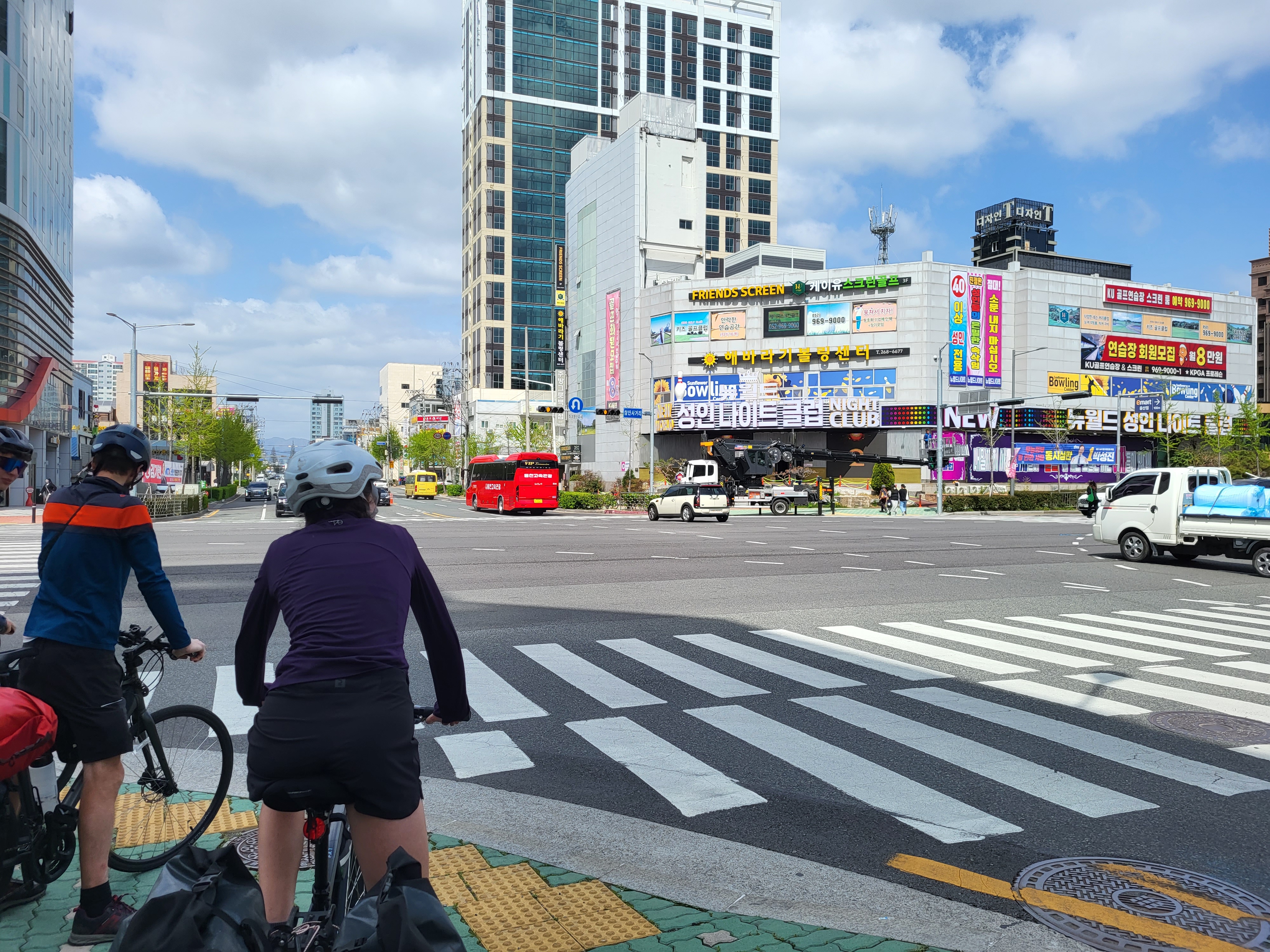 L’entrée dans Séoul fut vraiment un chouette moment, par un dimanche très ensoleillé, entourés de centaines de cyclistes dans un ambiance mêlée de « 20 kilomètres de Bruxelles » et de « dimanche sans voiture ». Il faut dire que les Coréens sont des amoureux du vélo. Beaucoup roulent sur des modèles dernier cri (et couverts littéralement de la tête aux pieds, le visage entièrement masqué, pas un centimètre de peau ne devant être exposé au soleil, ce qui surprend un peu au début). D’autres utilisent les vélos et tandems mis en location en de nombreux endroits le long de la piste.