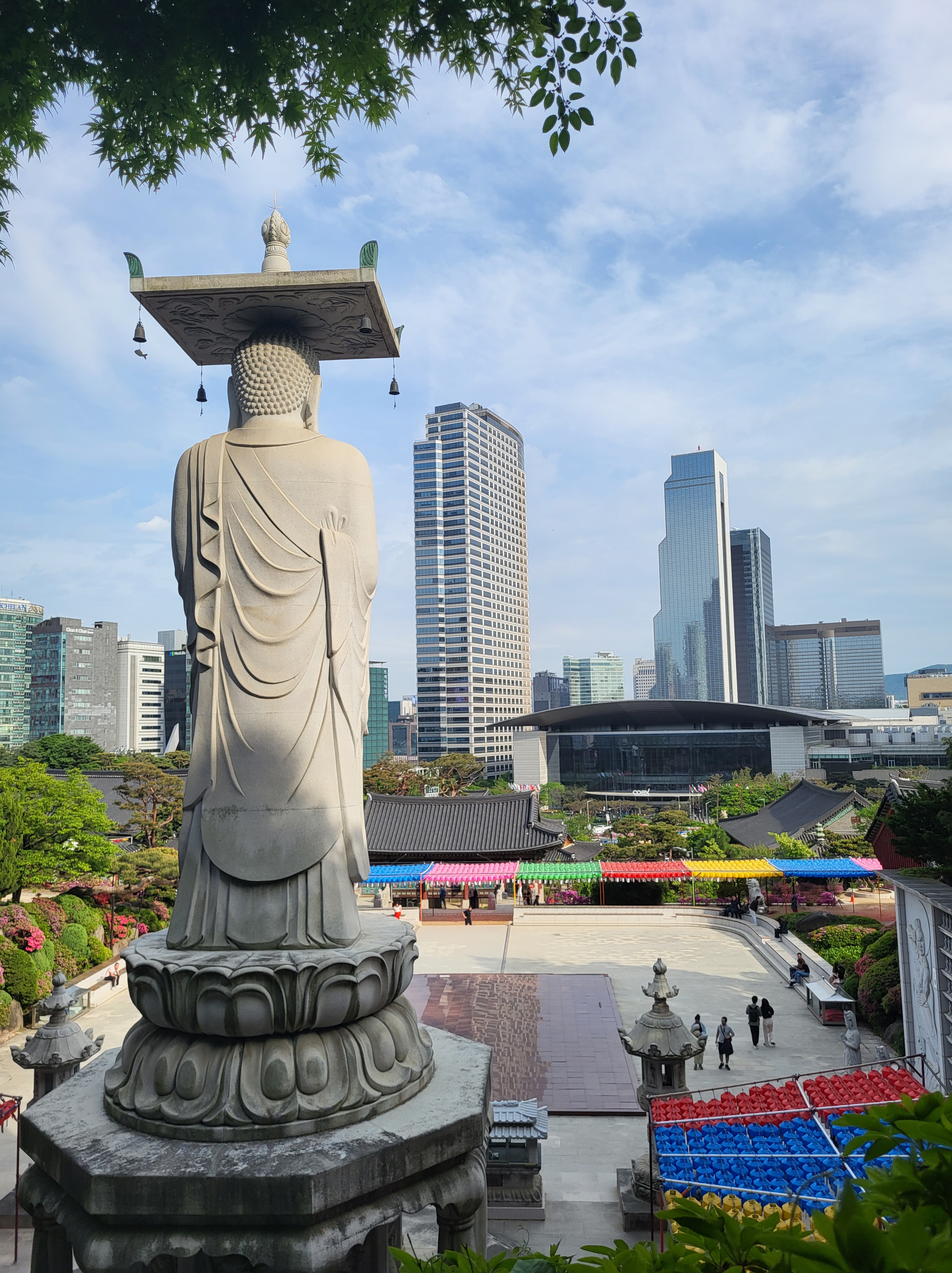 A Séoul, nous profitons encore un peu de nos super vélos pour visiter cette ville énorme (près de 10 millions d’habitants), mais néanmoins vivante et attachante, à travers laquelle il est aisé de se déplacer à deux roues. D’anciens palais et lieux de culte (maintes fois détruits et reconstruits) cohabitent avec des gratte-ciels modernes. La ville est propre et très animée.